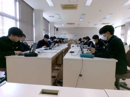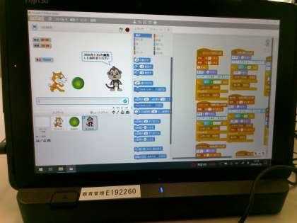 プログラミングでユニークな動きを作成しています。問題を出題、解答する形式のプログラミングをしている生徒もいました。