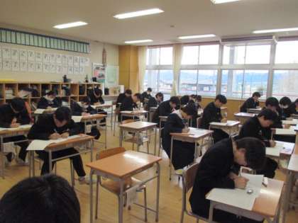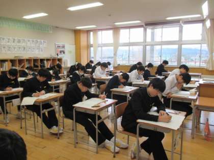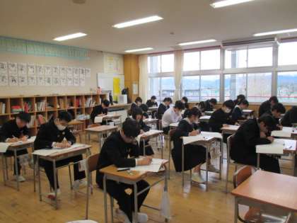 学年末考査2日目は、1限社会、2限理科です。3年生は、今日で最後の定期考査が終了します。