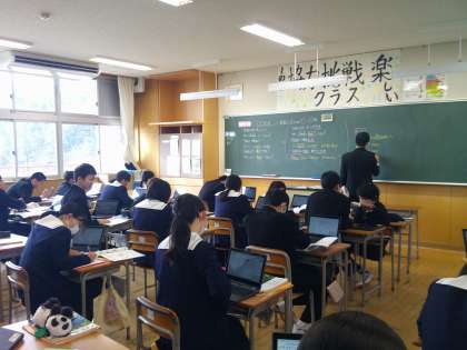 1組は社会で歴史の学習をしていました。2組は国語で擬人法について発表をしていました。3組は英語でクロムブックを使って学習しているとこでした。