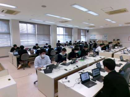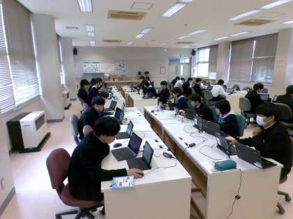 2組のプログラミング学習の様子です。作成した作品を鑑賞し、良いと思った作品に投票し、MVPを決めました。
