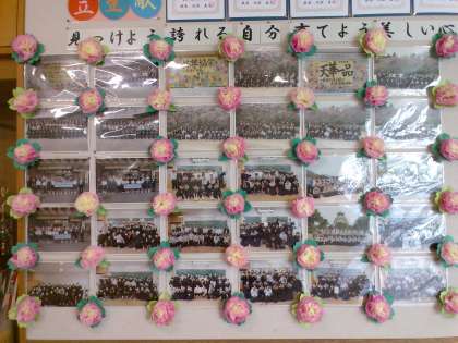 デコレーションが完成しました!3年間の成長が感じられます。職員室横で掲示中です、みなさん見てくださいね。