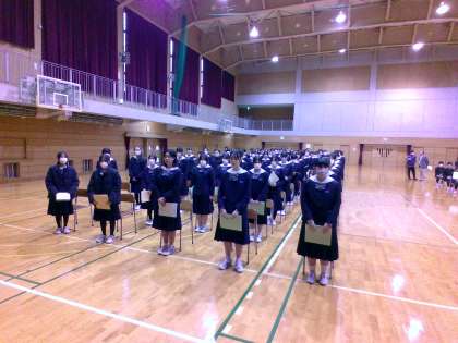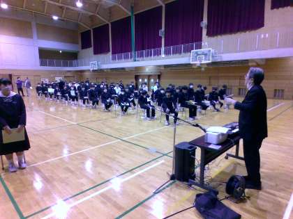 来週の卒業式に向けて、在校生は式歌練習を行いました。
