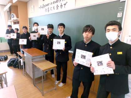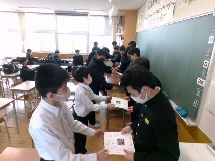 男子バドミントン部の様子です。先輩から後輩へメッセージが送られました。また、色紙の贈呈が行われました。今まで、男子バドミントン部を引っ張ってありがとうございます!