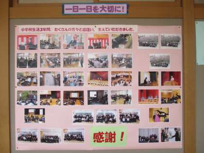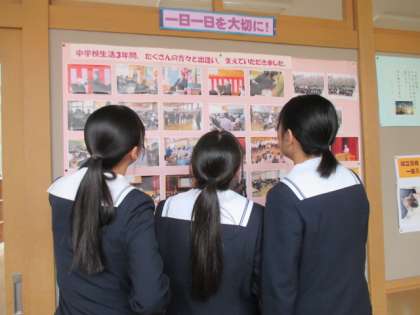 中学校生活の3年間、たくさんの方々と出逢い、支えていただきました。卒業式まであと3日。残り少ない中学校での一日一日を、大切に過ごしましょう。
