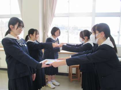 2年生全員の思いが込められた色紙を1人1人に手渡し、感謝の気持ちを伝えました。