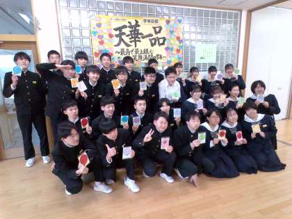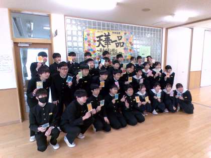卒業式練習の前に、学年目標の前で記念写真を撮りました。