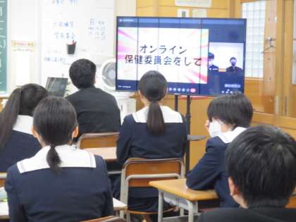 保健委員会の「アサーションの合い言葉」の発表を見ています。