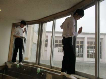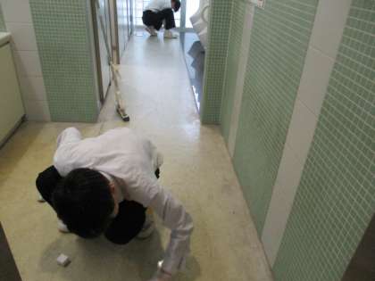 3年間の感謝の思いを込めて、3年生が清掃をしました。