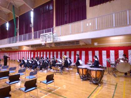 体育館では、吹奏楽部が本番に向けてリハーサルをしていました。準備は整っています。