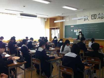 1組は英語です。問題を考えているところでした。3組は英語です。スライドを見ながら学習していました。