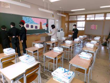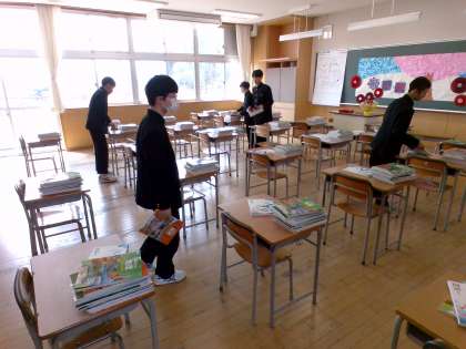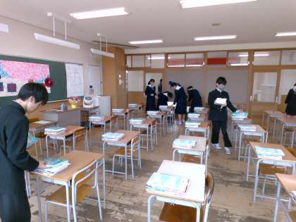 2年生と3年生が、午後からの入学式に向けて準備をしてくれています。