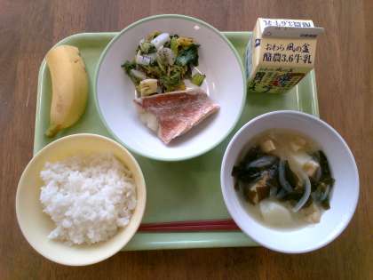 赤魚の塩焼き ゆかり和え みそ汁 バナナ