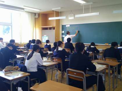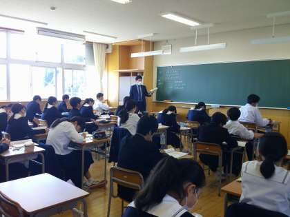 2年1組の数学では、円周についての話を聞いていました。2組の社会では、安土・桃山の時代についての説明がありました。3組は、今年度の体育の授業の流れについて聞いていました。どのクラスも集中して授業を受けていました。