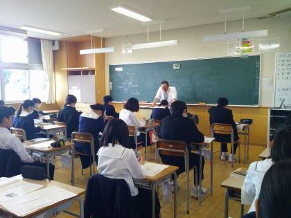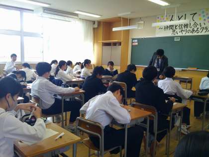 1組は理科、2組は社会、3組は技術の授業でした。話をしっかり聞いて授業を受けています。