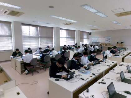 3組の様子です。コンピュータの基本操作を学び始めました。