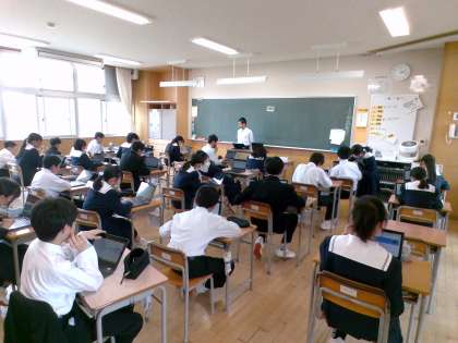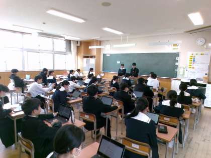 中学校で初めての学級討議が始まりました。クラスの代表者は緊張しながらもしっかり発表していました。