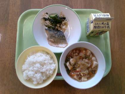 さばのみそ煮 ごま酢和え 豆腐と野菜のうま煮