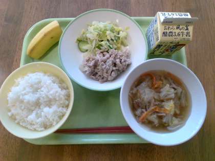 バナナ ごはん 牛乳 です。