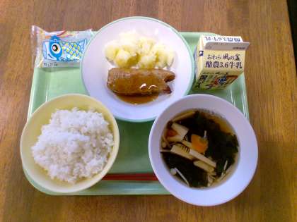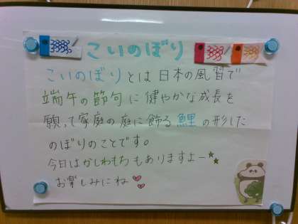 鯉のぼりハンバーグ こふきいも 若竹汁