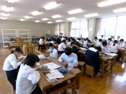 2組技術の様子です。テーブルタップの製作に入りました。今日は、コードの処理に挑戦しました。初めての作業は、難しいですね。