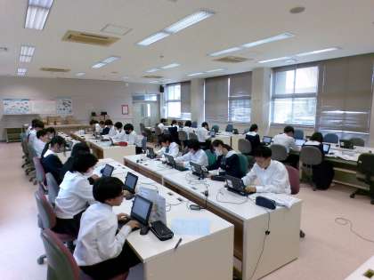 1組の技術の様子です。タイピング練習をしながら、コンピュータの機能と装置について学んでいます。