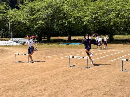 2年生は体育の授業でハードル走が始まりました。