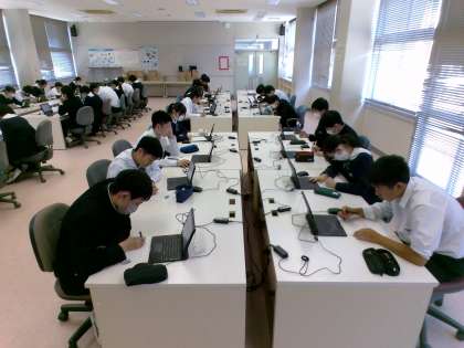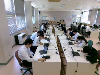 1組技術の様子です。発電方法のしくみをメリット、デメリットを意識しながら調べ、今後の日本の発電はどうあるべきかを考えました。難しい課題ですね。