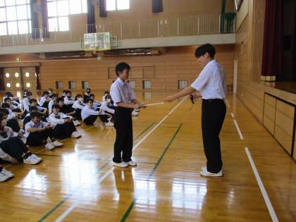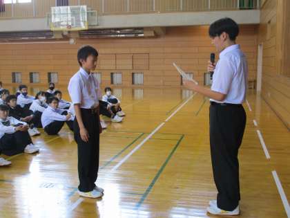 先日の学年レクリエーションで行った、ドッジボール大会の表彰式の様子です。