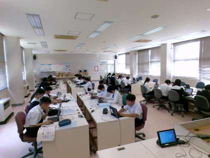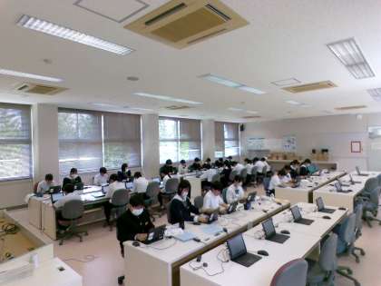 2組技術の様子です。コンピュータの機能と装置について、入力練習をしながら学習しています。