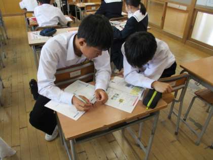 中間考査に向けての学習の仕方について、情報交換をした後、学習を進めています。