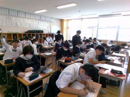 修学旅行のレポートを作成しています。歴史や文化、現代社会、国際関係等、様々な課題を見つけ出し、探究につなげていきます。