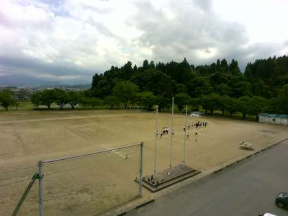写真では分かりづらいのですが(というか全然分からないですね)、バトンパスの練習をしています。