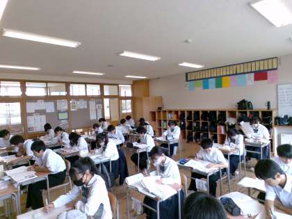 3組技術の様子です。学習プリントを使って、学習内容をまとめました。