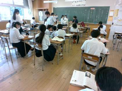 1年3組、国語の授業です。書いたプリントを先生に見てもらっています。