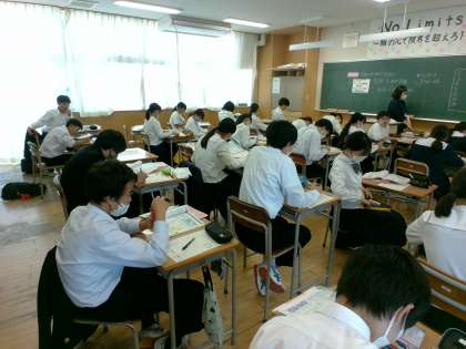6時間目、2年2組は家庭分野、2年3組は社会の授業でした。