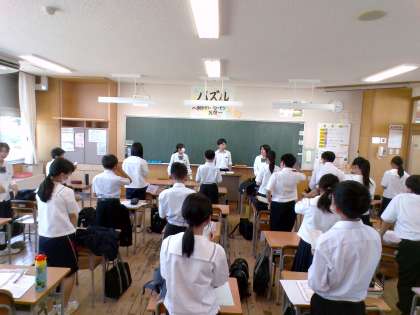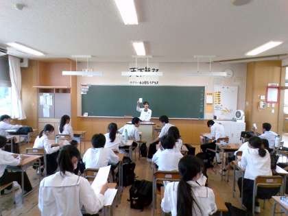 終学活時を利用して、3年生の応援団員が1年生の教室で応援の指導を行いました。