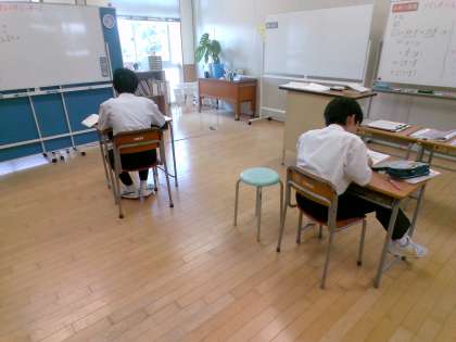 2組数学の様子です。1年は文字を使った式の基本問題、2年は代入法による連立方程式の解き方を学びました。