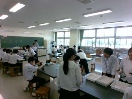2組の様子です。メスシリンダーや分銅器等の準備完了。ただ今から実験開始。うまくいくかな?いきますとも。