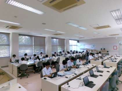 1組技術の様子です。情報の技術の学習中です。エアコンが入っていると集中できますね。