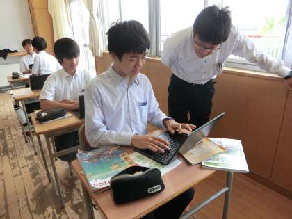 1組は英語、2組は保健、3組は理科の授業に取り組んでいます。