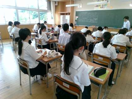 2組は理科の授業中。撮影するために教室におじゃました瞬間、ここでもまた背筋が急に伸びたような・・・。失礼しました、皆さん普段からシャキッとしてますね。