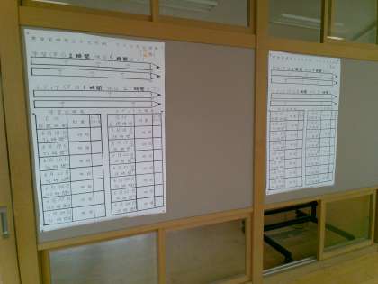 廊下の掲示です。「家庭学習時間UP大作戦」