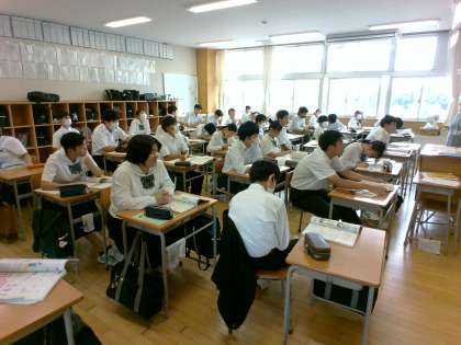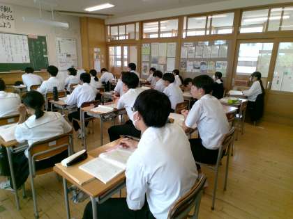 1組は化学反応式、2組は俳句の学習中です。