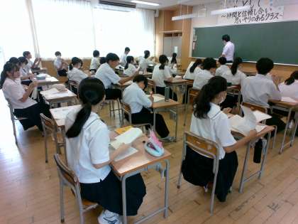 7月2日(火)2年生 数学 公開日 2024/07/02 更新日 2024/07/02 校長室より 期末考査答案を返却された直後あたりの1組におじゃましました。点数がよかったのでしょうか、踊ってるように見える人がいますね。