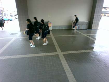 16:15に合わせて下校する生徒たちです。