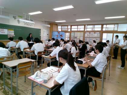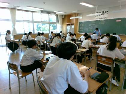 1組数学、2組は家庭です。2組は、他校から授業を見学に来られています。