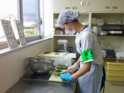 多機能型事業所このみでは、お弁当の食材準備を行っていました。生徒はネギを一生懸命切っているところでした。働くことの大変さを感じつつ、熱心に活動をしていました。