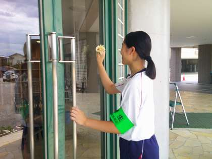 学校で活動する生徒たちは、玄関を窓ふきしたり、草むしりをしたり、城山中学校の玄関先をきれいにしてくれました。しおりの感想には「大変でしたが、きれいになると楽しかった」ということが書かれていました。明日から各事業所にいきますが、しっかりと挨拶をして、仕事をがんばりましょう!