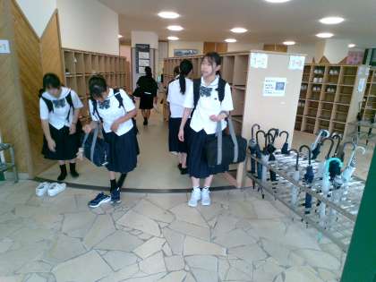 本日の帰りの会は15:20終了、部活動は延長する場合17:00まで、その15分後を下校完了予定としております。
