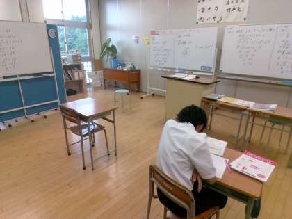 2組数学の様子です。今日は、係数に分数をふくむ方程式の解き方を学びました。来週からは、14歳の挑戦を終えた2年生が戻ってきます。
